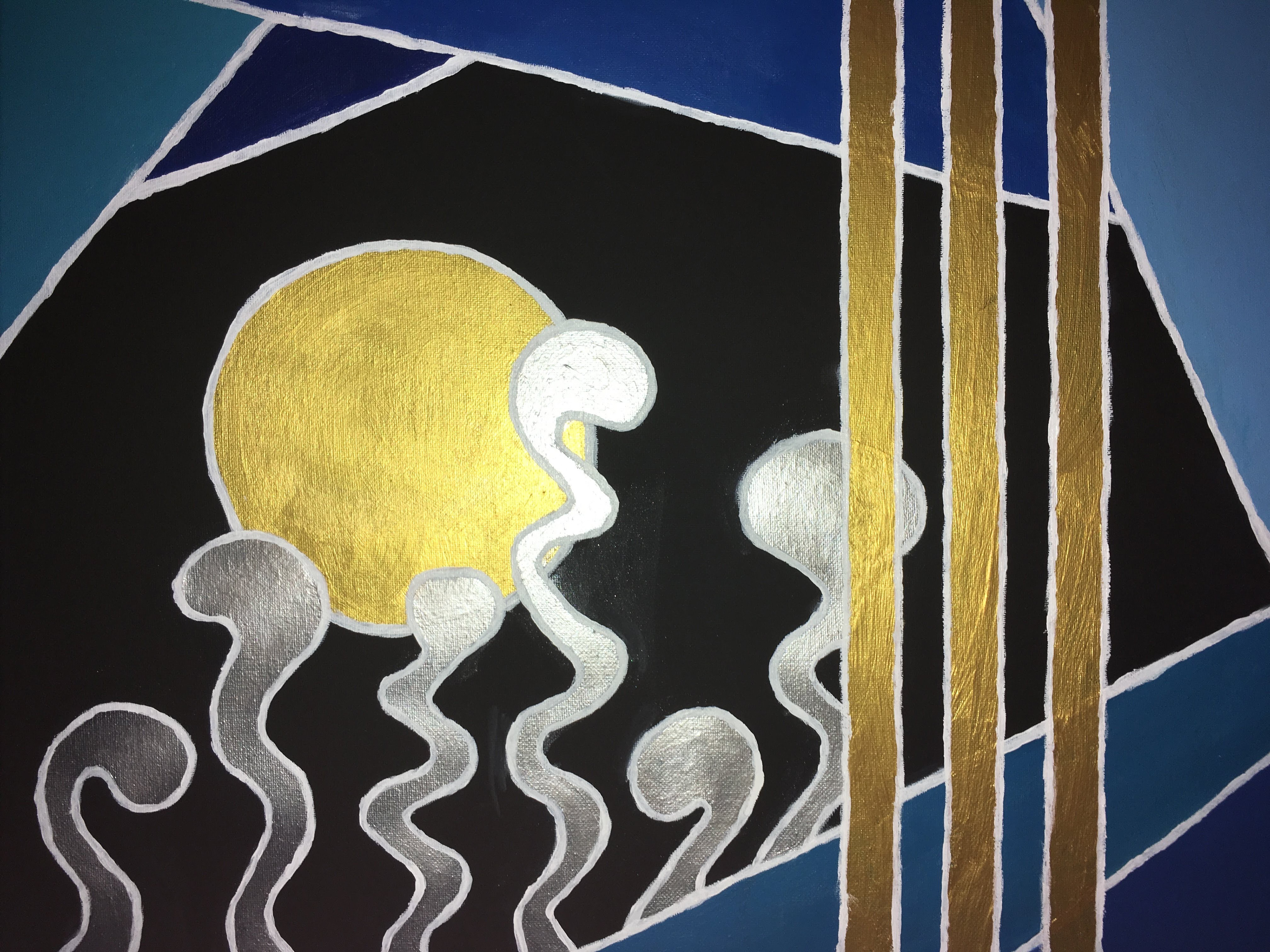 "Smoke Amidst the Rising Moon": acrylic on canvas